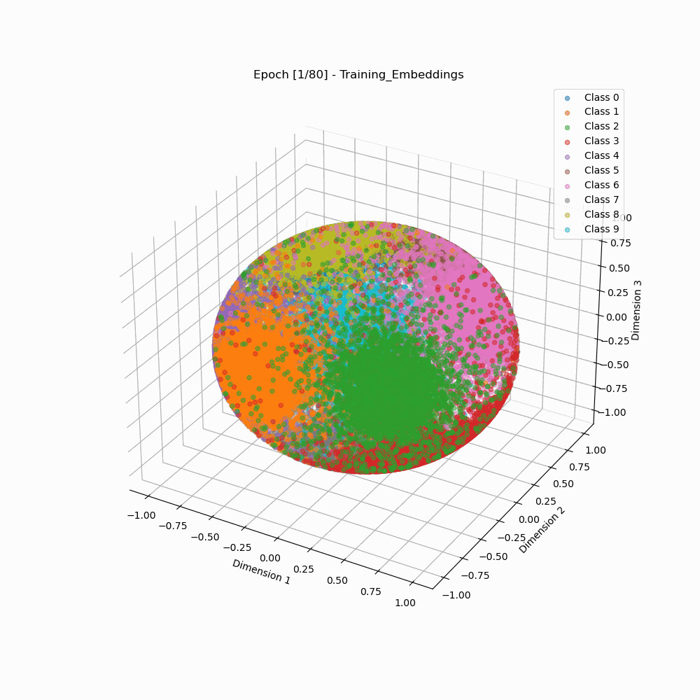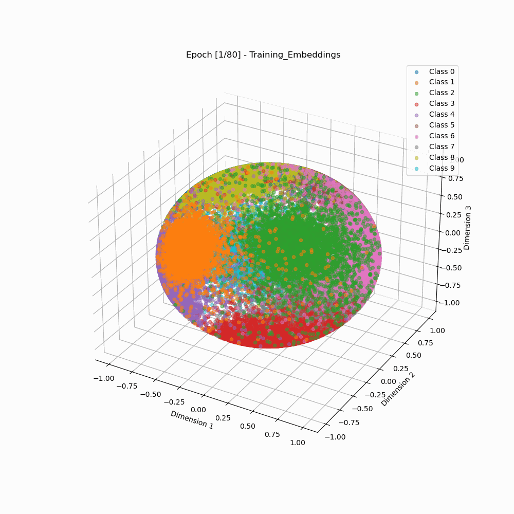 The provided code trains a VGG8 network on the popular MNIST dataset using the ArcFace loss and Softmax loss, and generates visualization of embeddings. For more information on how to create and visualize such embeddings, please checkout the repository.